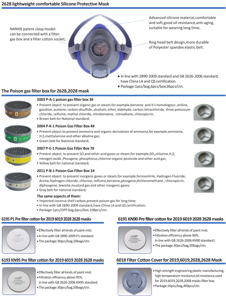 ●clasp model,can be connected with filter gas box and filter cotton socket, used to protective dust or protective poison gas mask;