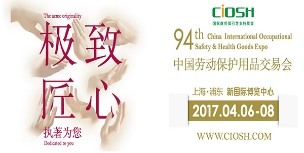 浙江衢州南核特種勞動(dòng)防護用品科技有限公司將參加第94屆中國勞動(dòng)用品交易會(huì )(上海),參展日期:2017.4.6-8,展位號:W1號館ATB06,面積72平方米,歡迎屆時(shí)前來(lái)參觀(guān)。